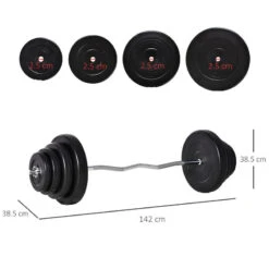 Barra De Pesas Curvada Con 8 Pesos 70 Kg HOMCOM 140×38,5×38,5 Cm Negro