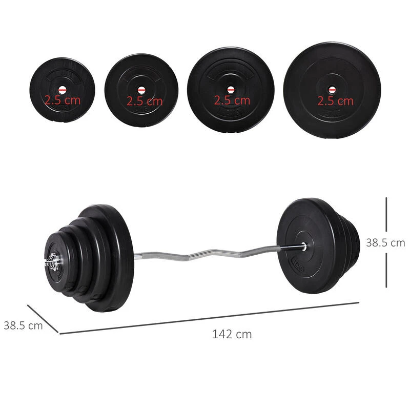 Compra en Decathlon Barra de pesas curvada con 8 pesos 70 kg HOMCOM 140×38,5×38,5 cm negro ¿Has visto esta barra de pesas de HOMCOM con pesos intercambiables? Para que puedas colocarlos o sacarlos de la barra según tus necesidades.