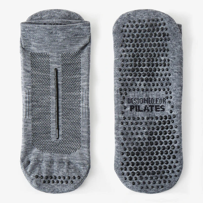 Compra en Decathlon Calcetines antideslizantes de Fitness Calcetines antideslizantes con tiras de silicona situadas debajo del pie e interna para una mejor sujeción. Evacúan el sudor hacia el exterior.