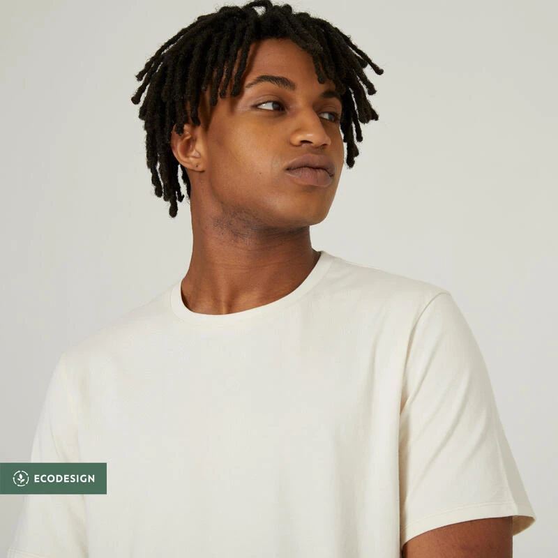 Compra en Decathlon Camiseta Fitness 500 Hombre No Dye Regular Hemos elegido este básico, blanco, mayoritariamente de algodón… ¡sin teñir! ¿Por qué? Para reducir nuestras emisiones de CO2 en un 30 % y nuestro consumo de agua en un 70 %.
