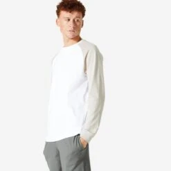 Compra en Decathlon Camiseta fitness manga larga recta algodón Hombre Domyos 520 blanco y ¡Hemos pensado y creado esta camiseta de manga larga para que sigas siendo sencillo y elegante en el deporte, en casa y en cualquier otro lugar!