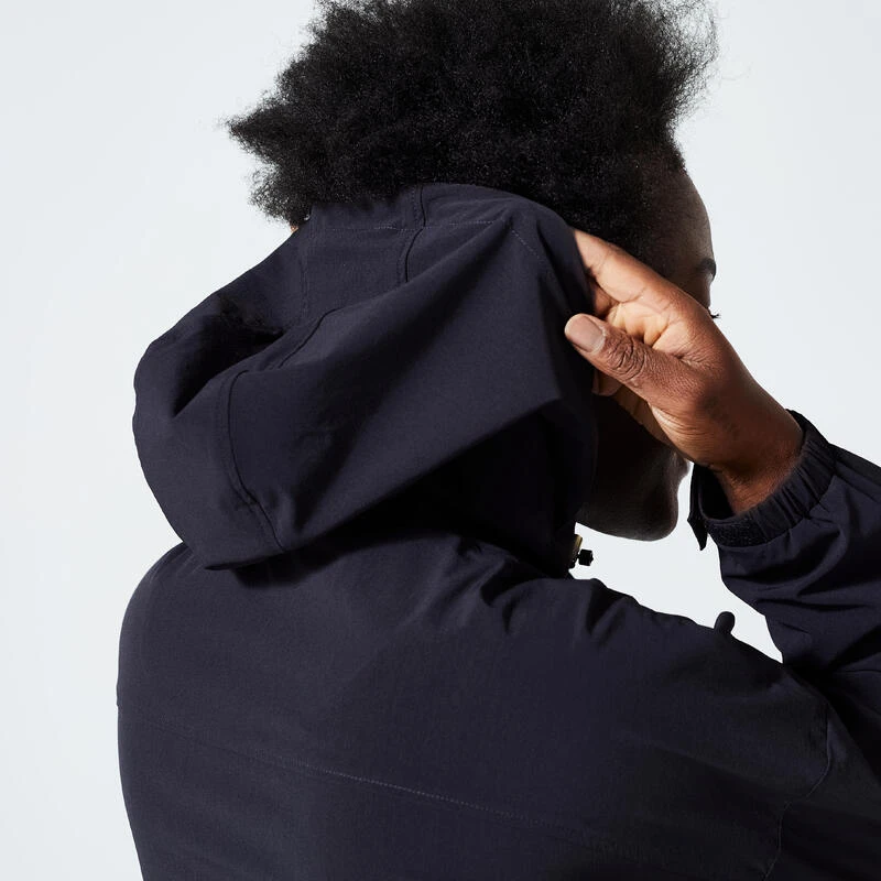 Compra en Decathlon Chaqueta Fitness Negro Amplia Capucha Una chaqueta con capucha muy ligera con un corte holgado y corto, para usar antes o después de la práctica, o incluso todos los días.