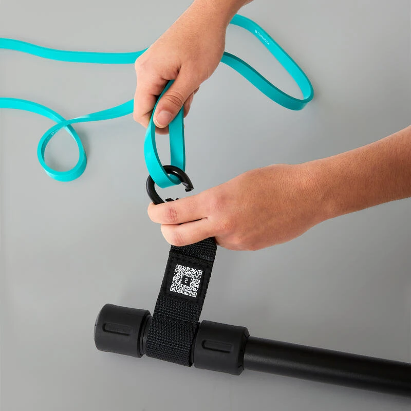 Compra en Decathlon Kit barra + bandas elásticas 15 kg Corength Este kit de entrenamiento incluye una barra, dos bandas elásticas de entrenamiento de 15 kg, un código QR y una bolsa de transporte para que puedas hacer multitud de ejercicios.