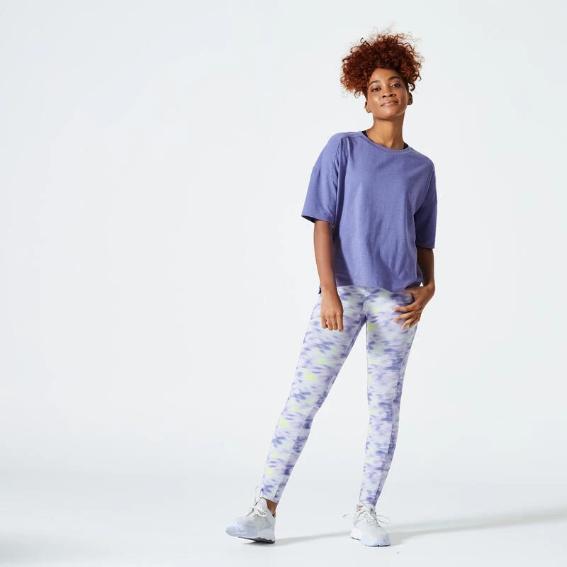 Compra en Decathlon Leggings fitness 520 Domyos Mujer estampado Estos leggings de fitness, ecodiseñados con un 28 % de poliéster reciclado, moldean tu figura y permanecen opacos en cualquier circunstancia.