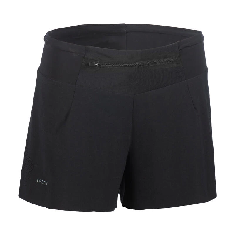 Compra en Decathlon Short pantalón corto trail running Mujer Pantalón corto de trail ultraligero con cintura de almacenaje, para correr con autonomía con lo esencial cualquier distancia (entrenamiento o competición).