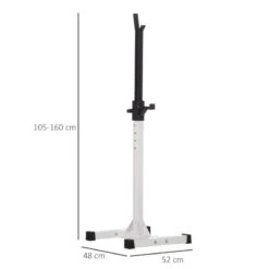 Compra en Decathlon Soporte para Barras de Pesas HOMCOM de Acero 52x48x105-160 cm Blanco Disfruta de tus entrenamientos en casa con este par de soportes para barras de pesas de HOMCOM. Hechos de acero resistente, pueden soportar un total de 150 kg en conjunto.