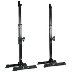 Compra en Decathlon Soporte Rack de Pesas para Musculación Separable Alta Carga Negro Soporte o rack ideal para cualquier entrenamiento con barra y para hacer sentadillas. Diseño robusto con una carga máxima de 300 kg, ajustable en altura, compacto