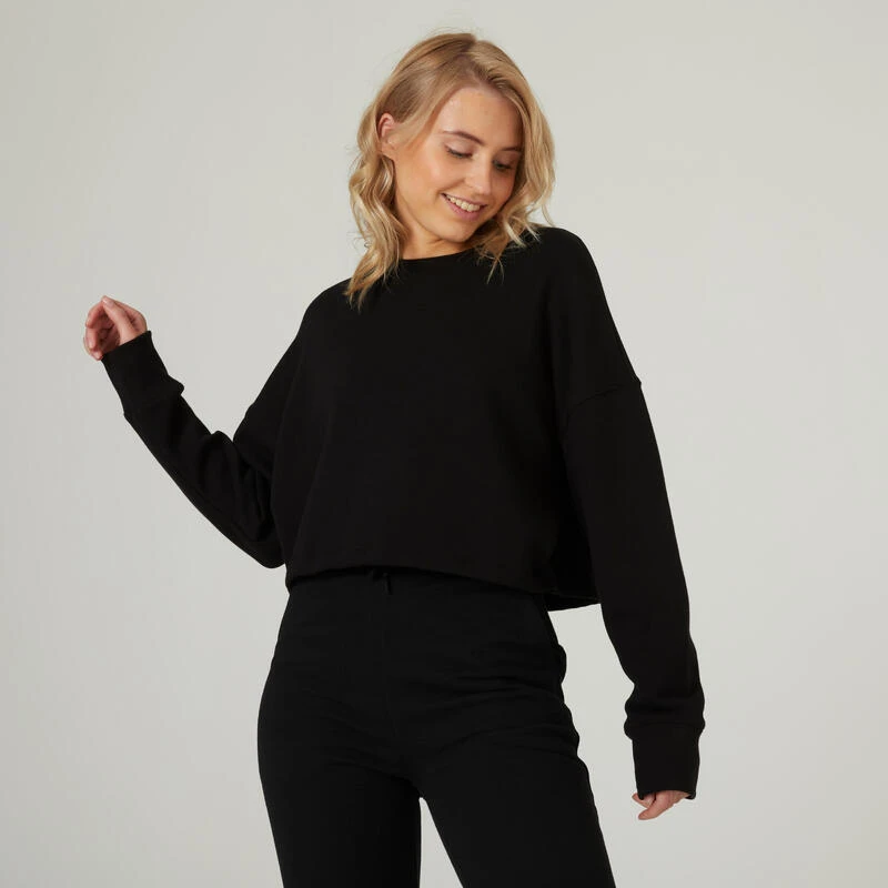 Sudadera Fitness Crop Top Domyos 520 Mujer Negro